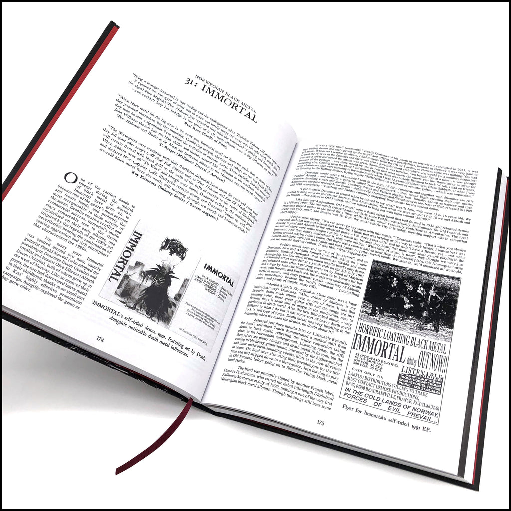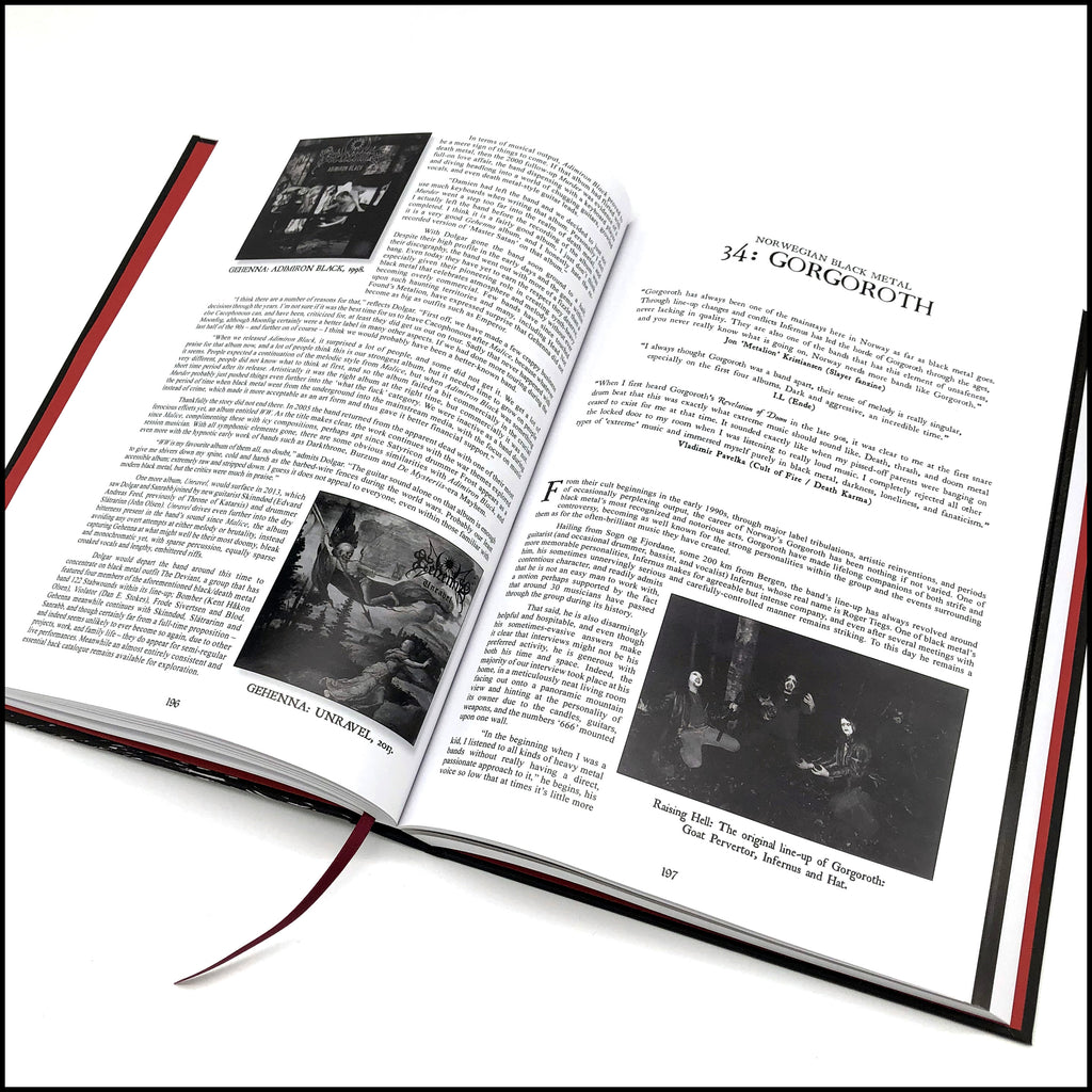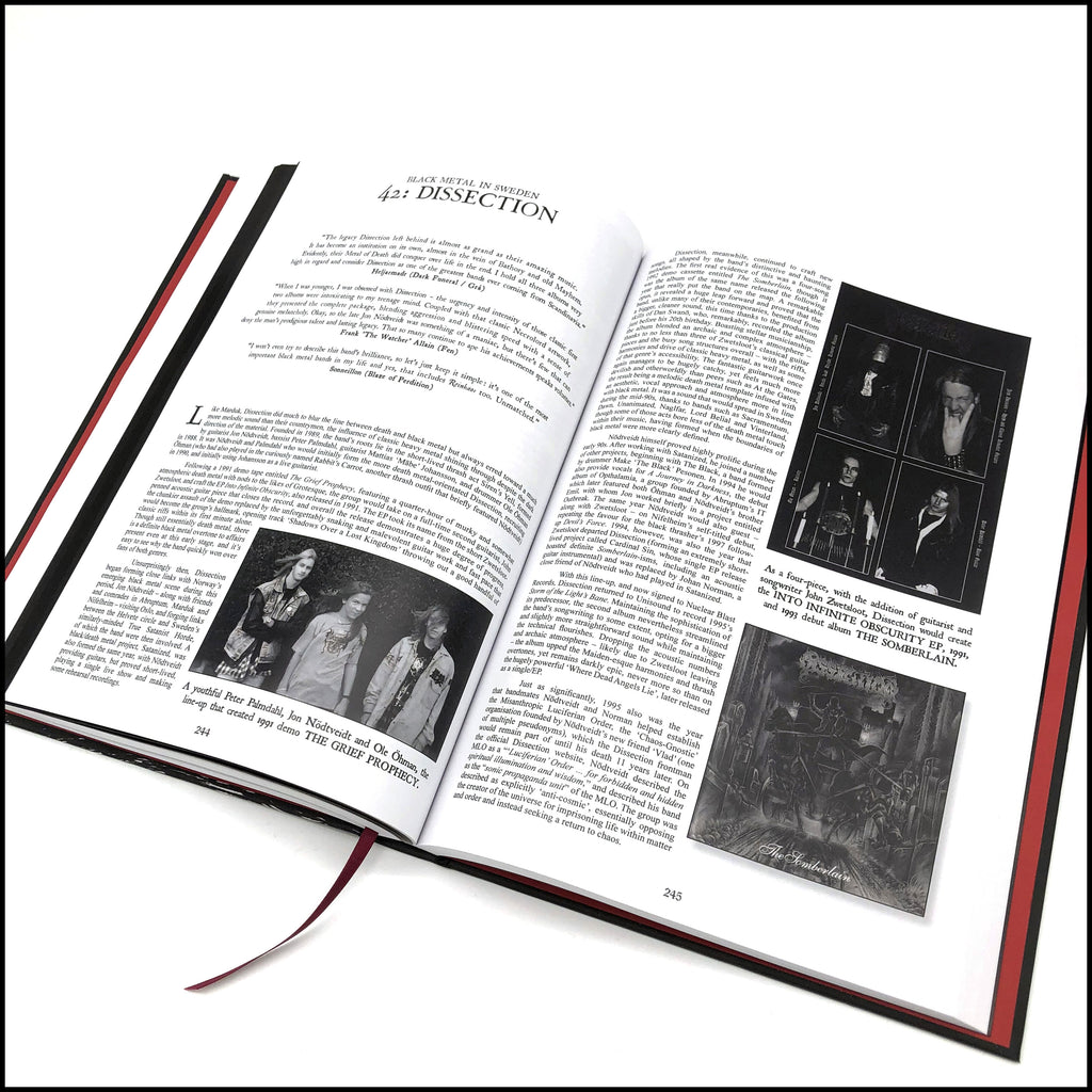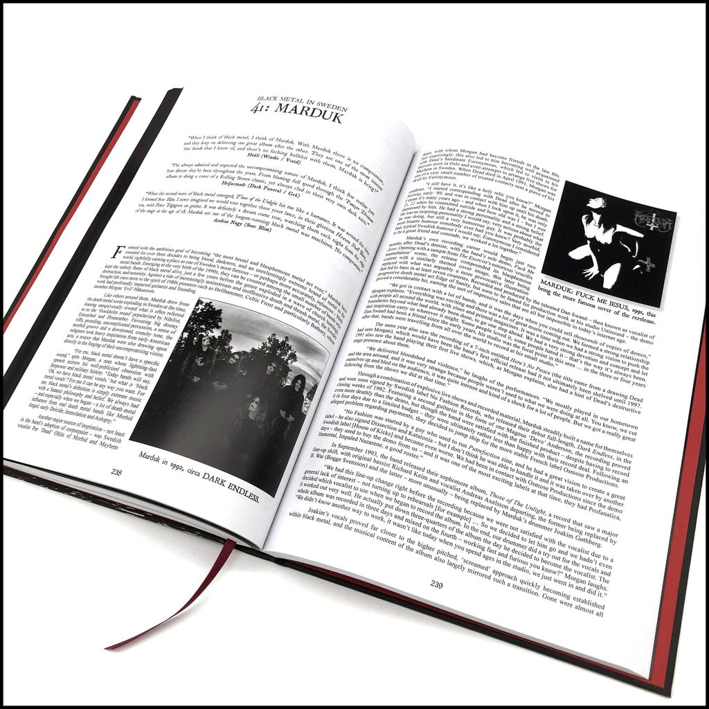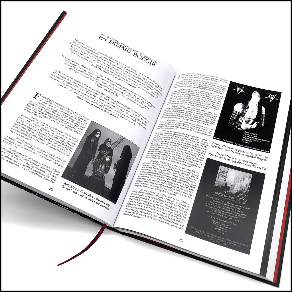Featuring over 160 interviews and exploring bands including: VENOM • MERCYFUL FATE • BATHORY • HELLHAMMER • CELTIC FROST • SODOM • DESTRUCTION • SEPULTURA • VULCANO • HOLOCAUSTO • MYSTIFIER • BLASPHEMY • SAMAEL • ROTTING CHRIST • NECROMANTIA • DEVISER • TORMENTOR • MASTER’S HAMMER • VON • MAYHEM • THORNS • DARKTHRONE • BURZUM • IMMORTAL • EMPEROR • GEHENNA • GORGOROTH • TRELLDOM • BEHERIT • IMPALED NAZARENE • CRADLE OF FILTH • DIMMU BORGIR • LES LEGIONS NOIRE • MARDUK • DISSECTION • VINTERLAND • THE BLACK • WATAIN • SHINING • STRID • FORGOTTEN WOODS • BETHLEHEM • SILENCER • FORGOTTEN TOMB • LIFELOVER • GRAVELAND • INFERNUM • BEHEMOTH • HADES • HELHEIM • ISENGARD/STORM • KAMPFAR • WINDIR • PRIMORDIAL • OCTOBER FALLS • ENSLAVED • SATYRICON • ULVER • MORTEM • ARCTURUS • FLEURETY • IN THE WOODS… • MANES • VED BUENS ENDE • DODHEIMSGARD • SIGH • DEATHSPELL OMEGA • MYSTICUM • ABORYM • BLACKLODGE • BLACK WITCHERY • HECATE ENTHRONED • WINTERFYLLETH • FEN • PROFANATICA • ABSU and more