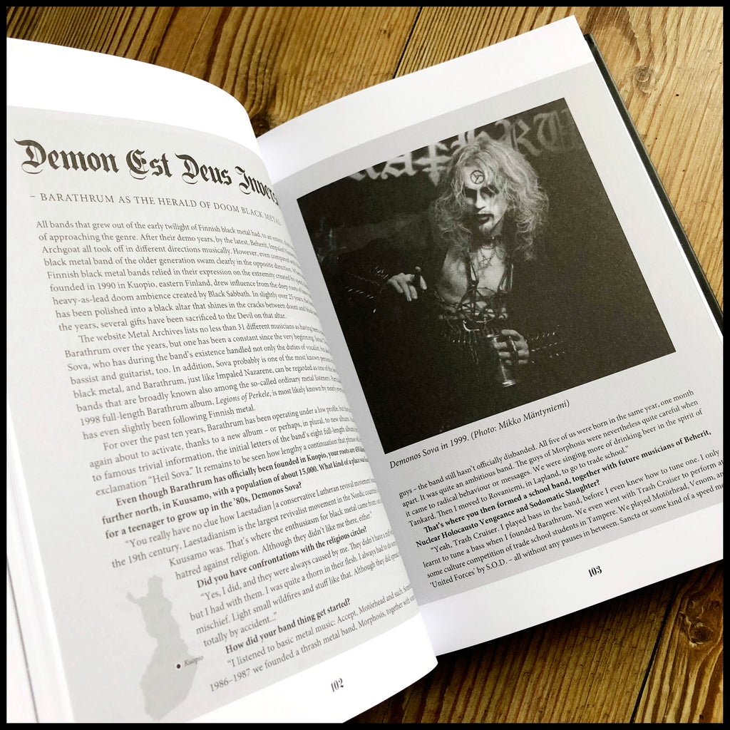 Based on over 50 interviews done between 2014 and 2016, the book unravels the story from late 80’s to modern days featuring such bands as: BEHERIT, IMPALED NAZARENE, BARATHRUM, ARCHGOAT, AZAZEL, DIABOLI, DARKWOODS MY BETROTHED, HORNA, VORNAT, THY SERPENT, WANDERER. URN, BLACK DAWN, …AND OCEANS, MUSTA SURMA, ALGHAZANTH, AZAGHAL, WARLOGHE, BEHEXEN, CLANDESTINE BLAZE, SATANIC WARMASTER, RIDE FOR REVENGE, GOATMOON. IC REX, CHARNEL WINDS, COSMIC CHURCH, SATURNIAN MIST, RIENAUS and ABYSSION.