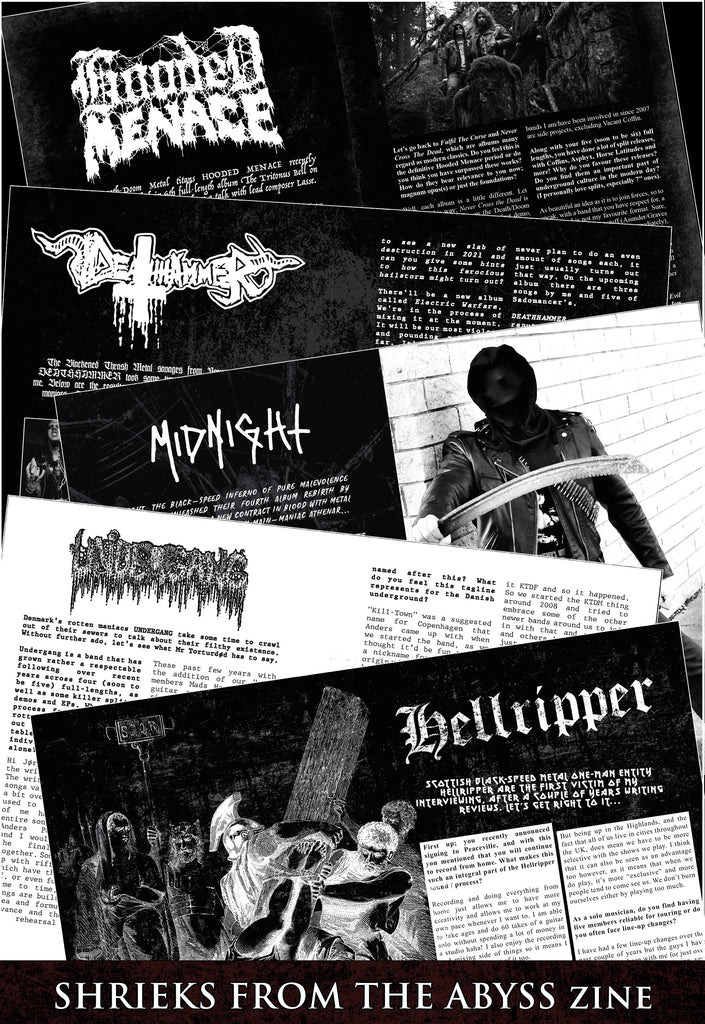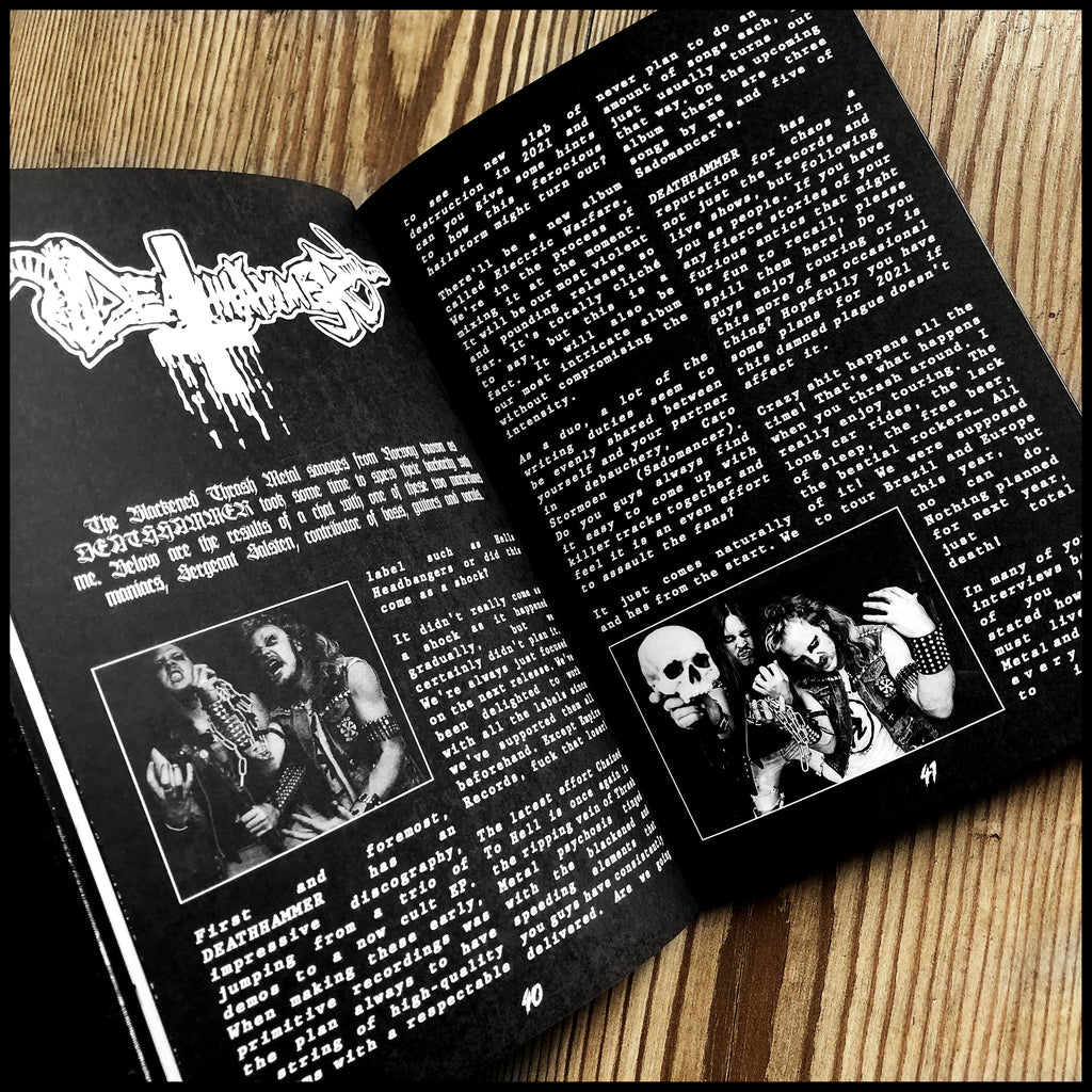 Death, black, speed, war and heavy metal worship from this high quality new fanzine. This first anthology collects issues 1, 2 and 3, the third issue being the largest and exclusive to this release. Dynamic and bold design coupled with interviews with some of the underground scene's most vital outfits, including: