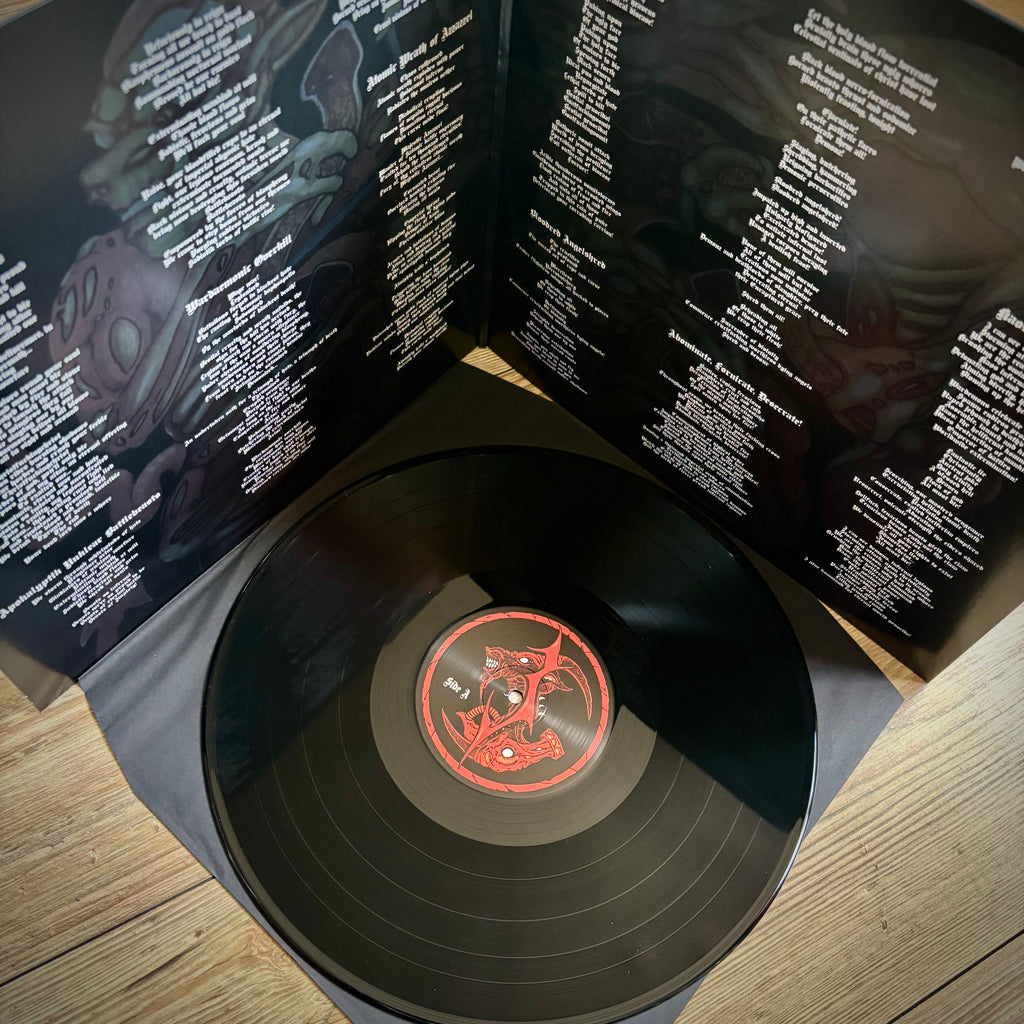 300x heavyweight black 12" (180g) in a black poly-lined innersleeve; download card, gatefold, full-color printed on 350g, all assembled in a plastic overbag.