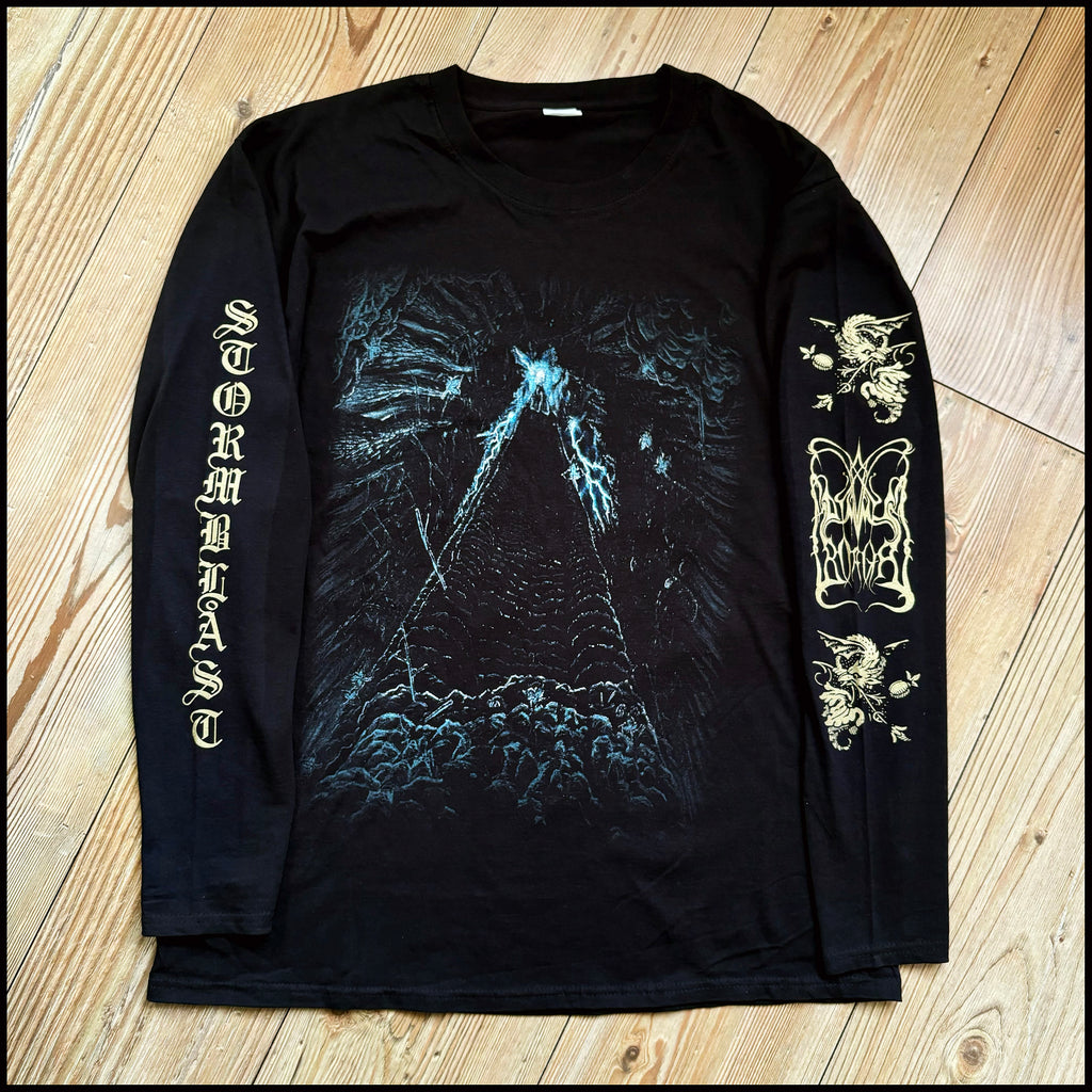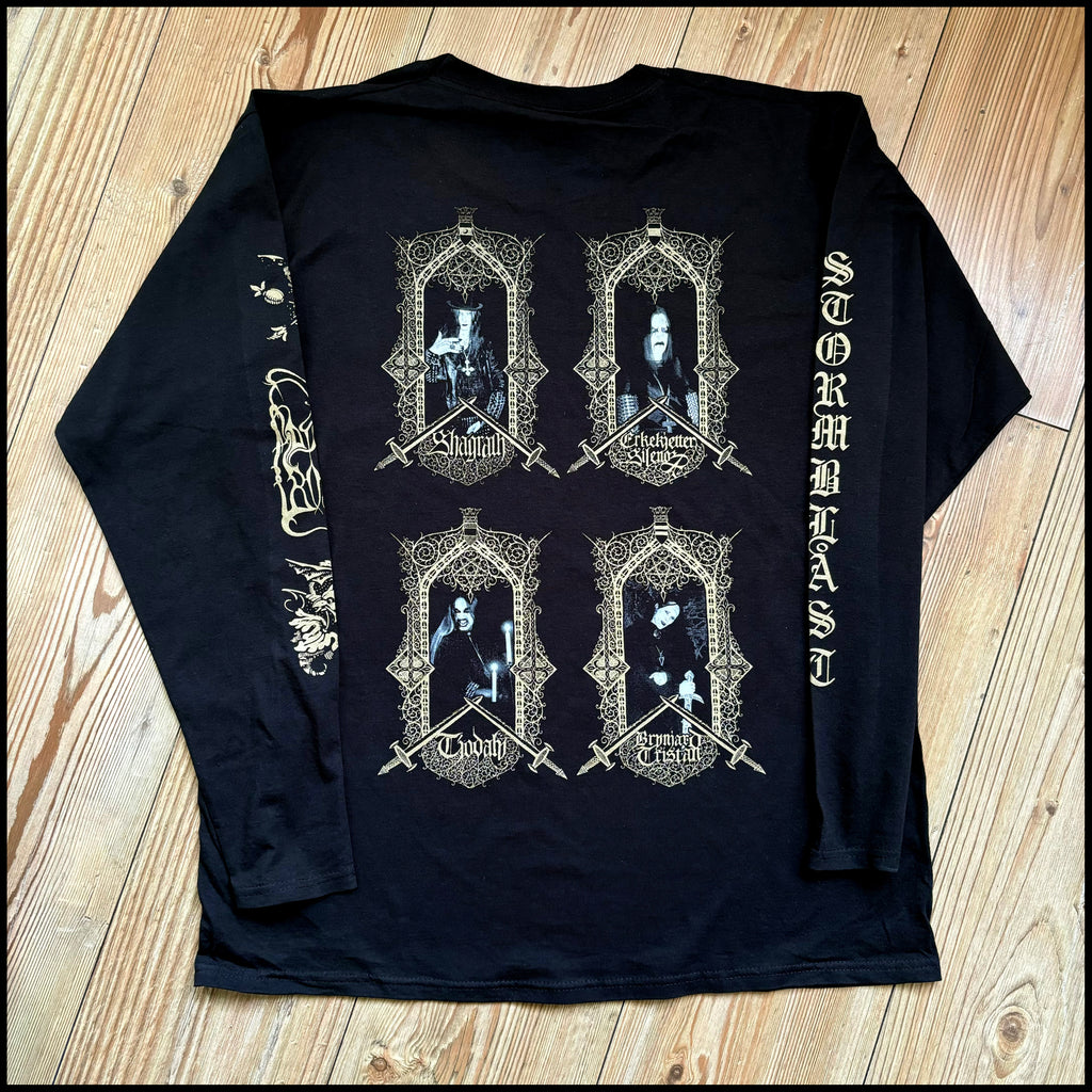 100% Official longsleeve dedicated to the timeless masterpiece, Stormblåst, released in 1996 by Norwegian black metal legends Dimmu Borgir. A perfect example of symphonic / classically inspired black metal before it became polished, this archaic and atmospheric opus has long deserved proper merchandise, and is presented here with the original cover art and the excellent portrait photos of the band on the back, along with great sleeve prints.