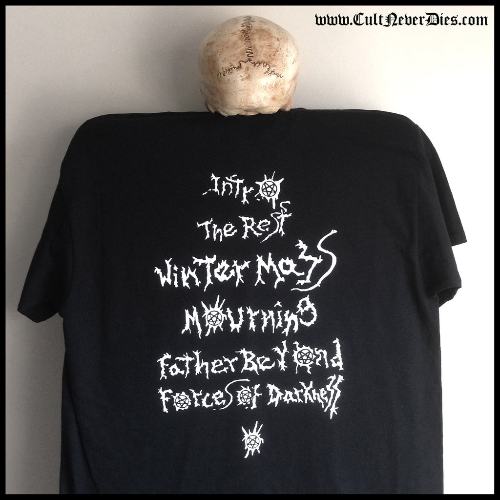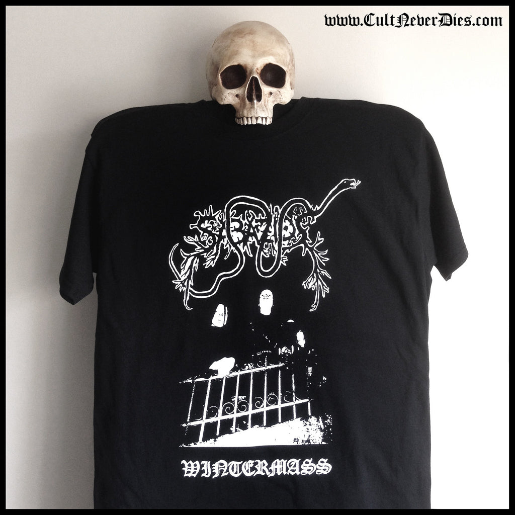 100% Official and exclusive edition shirt (Gildan Ultra Cotton) featuring the first incarnation of Norwegian industrial black metal pioneers Mysticum. Under the name Sabazios the band released their pioneering first demo 'Wintermass' and this shirt features the artwork from that very release. Designed in conjunction with the band, this is the first and only Sabazios/Wintermass shirt.