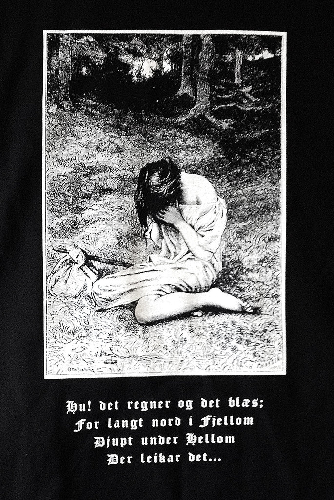 100% Official and Exclusive longsleeve shirt inspired by the Norwegian pioneers and their iconic debut album Bergtatt and its concept of a girl lured by the mountain and the beings that inhabit it. Front, back print and sleeve print. The back print is an illustration by Hans Peter Hansen and Otto Sindsing and was sourced by Kristoffer/Garm from a book on Norwegian folklore, originally published in 1881. Ulver are interviewed in the book 'Black Metal: Evolution Of The Cult', also available in this store.