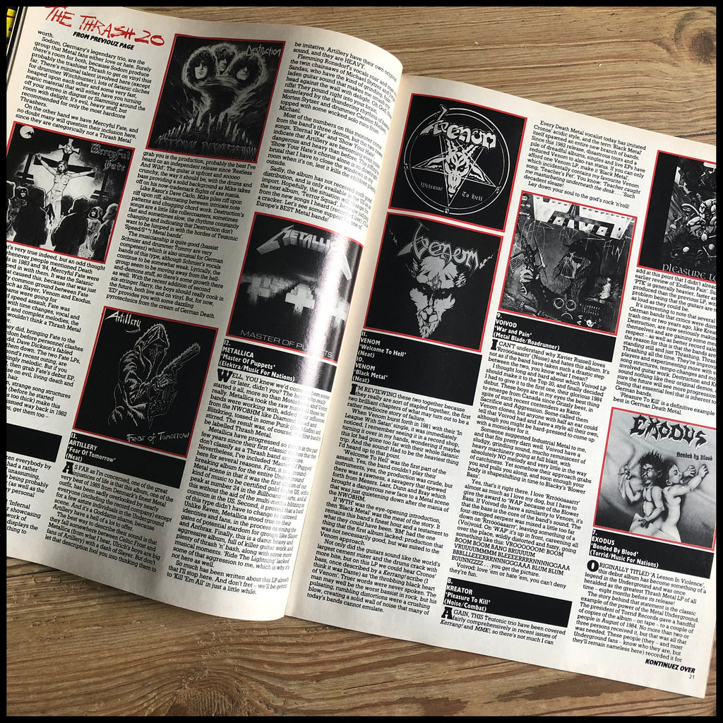 CELTIC FROST, SABBAT, VENOM, EXCITER, IRON MAIDEN, MOTÖRHEAD, MEGADETH, EXODUS, KING DIAMOND, DEATH, SLAYER, METALLICA, RAGE, RAZOR, JUDAS PRIEST, VOIVOD, KREATOR, SACRILEGE, ENGLISH DOGS, WARLOCK, DESTRUCTION, POSSESSED, CORONER, DEATHROW, ONSLAUGHT, HOLY TERROR, SACRILEGE, HEATHEN, TESTAMENT, SEPULTURA, NUCLEAR ASSAULT, TANKARD, SATAN, VIO-LENCE, DEATH ANGEL, BATHORY, OVERKILL, SODOM, ASSASSIN, METAL CHURCH, FORBIDDEN, SACRED REICH, CRUMBSUCKERS and more.